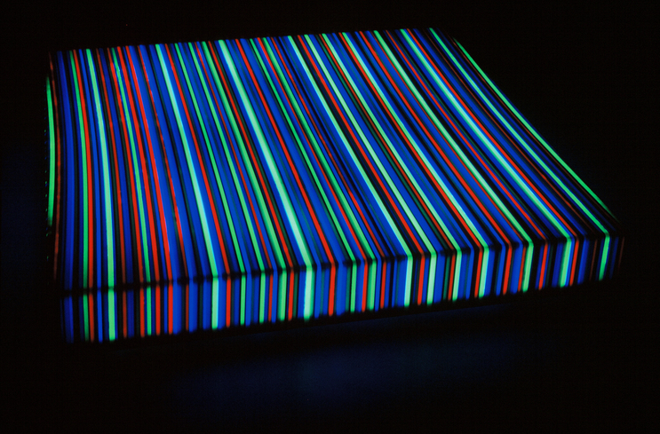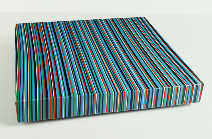 Mesa de centro iluminada em metacrilato listrado. 0,95 x 0,95 x 0,15 m